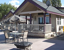 Each of our cottages offers a restful retreat after a day fun and adventure. Cabins are completely furnished with all amenities for comfort. There are excellent views of the lake through big patio doors and are only a few feet from the shoreline. A BBQ grill on the deck as well as deck chairs, tables w/umbrellas are avaialable for those hot days. There are also small campfire rings with a great view of the lake for those who like to sit around the fire in the evenings. Amenities also include bedding and kitchenware. Larger cottages have ovens but smaller cottages have stovetop, microwave and fridge.