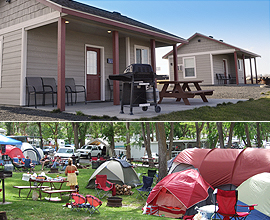 Think of a camper cabin as a big, sturdy and comfortable way to go tent camping. You will love the ease of driving your fuel efficient car over here with your sleeping bags and pillows….oh, don’t forget something to cook on the b-b-q! We also provide spaces throughout the resort for those who like to rough it with a tent. We have grass and beach locations (seasonal).