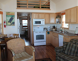 Each of our cottages offers a restful retreat after a day fun and adventure. Cabins are completely furnished with all amenities for comfort. There are excellent views of the lake through big patio doors and are only a few feet from the shoreline. A BBQ grill on the deck as well as deck chairs, tables w/umbrellas are avaialable for those hot days. There are also small campfire rings with a great view of the lake for those who like to sit around the fire in the evenings. Amenities also include bedding and kitchenware. Larger cottages have ovens but smaller cottages have stovetop, microwave and fridge.